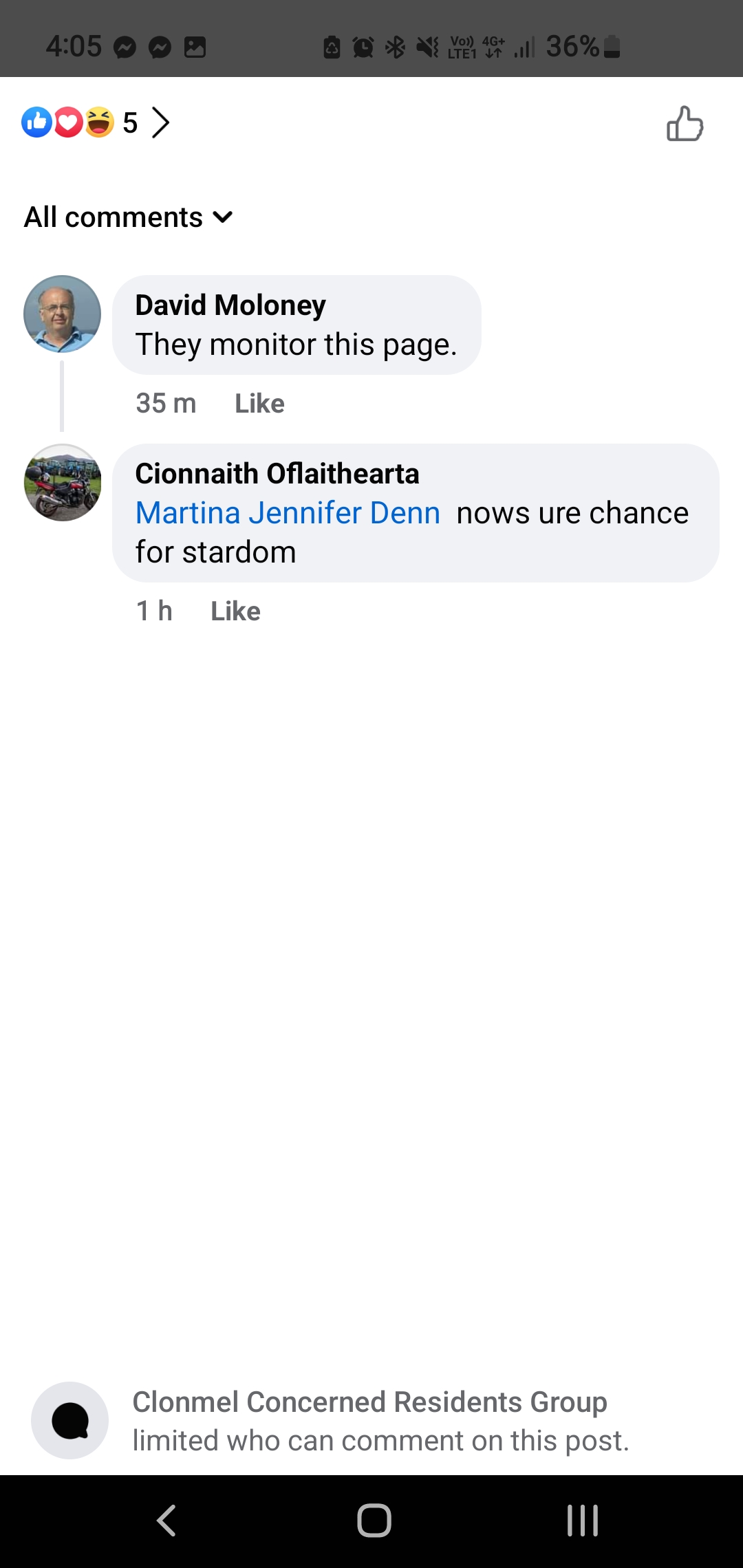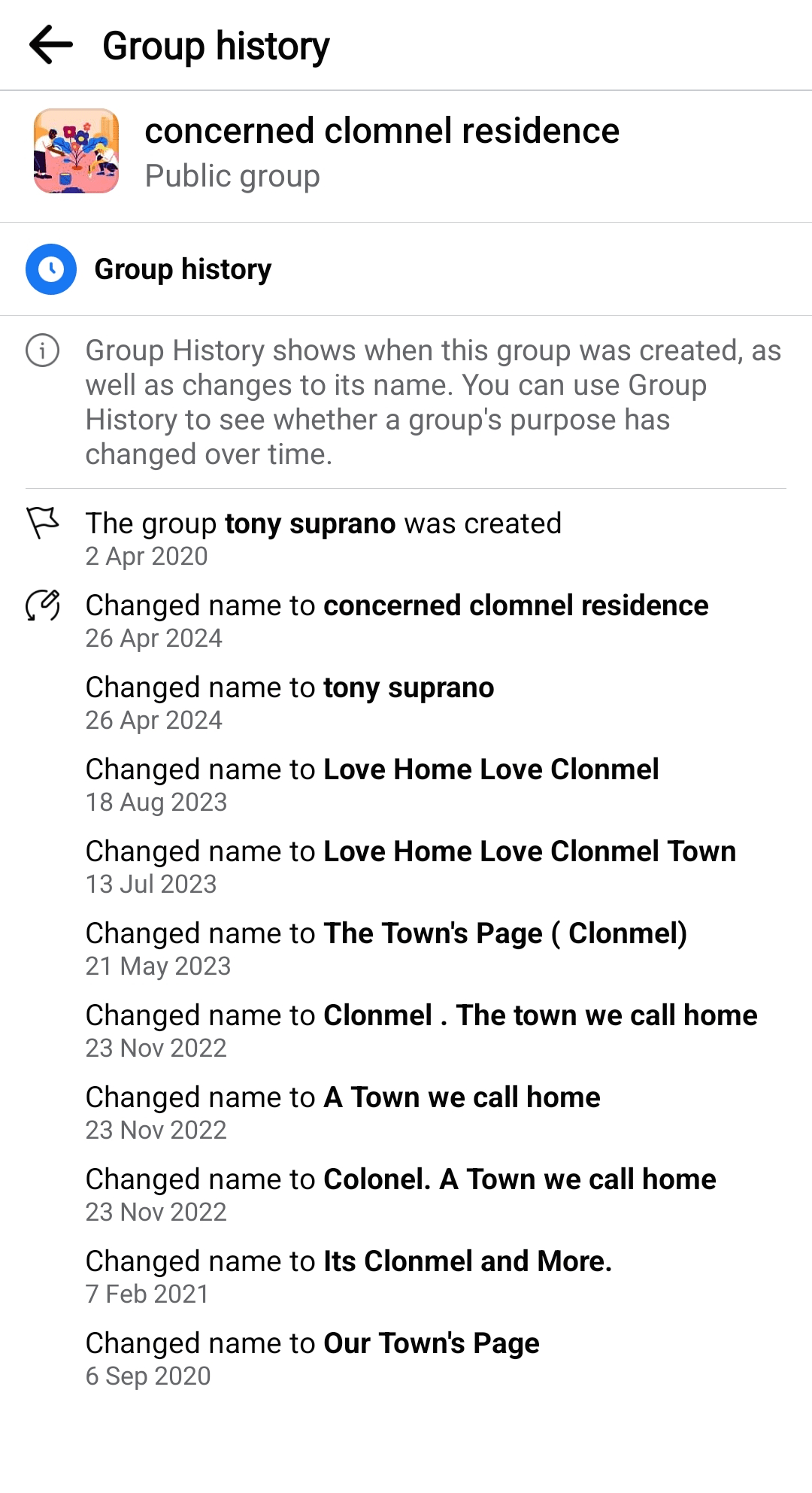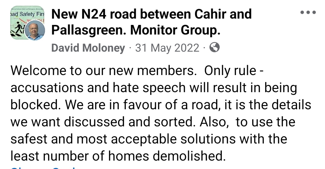 - David Moloney, operator of the Facebook page “Clonmel Concerned Residents Group”, created two days after I pointed out no trace of the group existed online